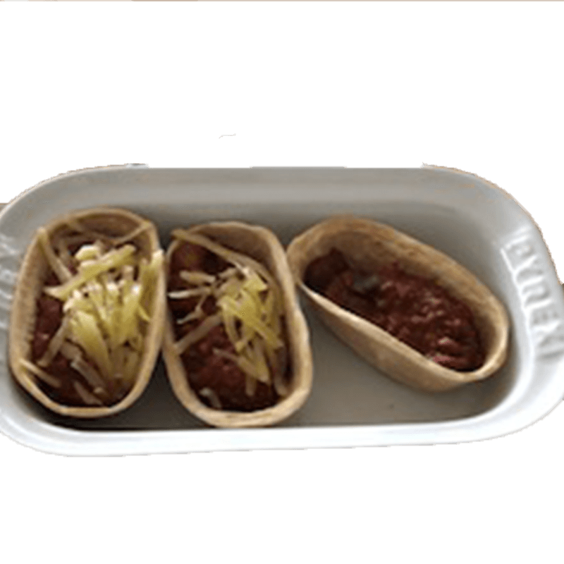 Ingredienser: Tomater* (59%), vann, soyasnitzel* (vann, sojaekstrudat*, rårørsukker* havsalt, muskatnøtt*) (20%), rårørsukker*, paprika* (11%), kidneybønner* (10%), vineddikk*, løk*, maisstivelse*, havsalt, fortykningsmiddel guarkjernemel*, piment (allehånde)*, timian*, kakao* alkalisert, paprika* bitter, hvitløk*, cumin*, koriander*, pepper, nellik*, kanel*, chili*,