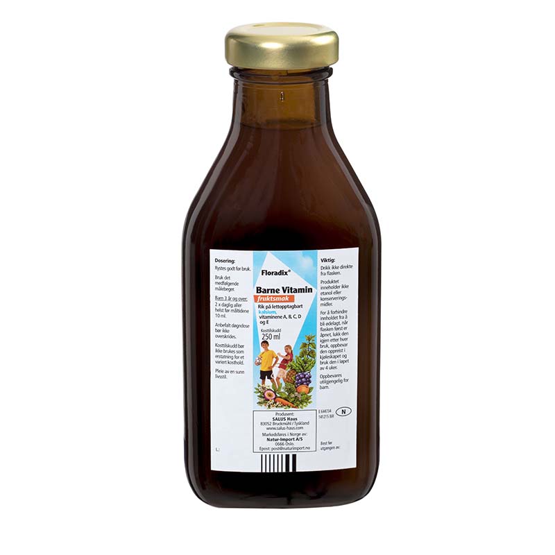 Floradix® Barne Vitamin er spesielt utviklet for barns kropper i utvikling for å absorbere næringen de trenger hver dag. Multivitaminen inneholder ingen fyllstoffer eller andre overflødige ingredienser som overvelder systemet. Dermed er faren for overdosering eliminert. Floradix® Barne Vitamin har en smak som er godkjent av barna, og er et ypperlig tilskudd for barn i vekst.
