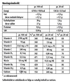 Denne unike og balanserte formulaen inneholder de viktige kjertel-, vev- og benbyggende vitaminene og mineraler for ditt barn i vekst. Barne Vitamin inneholder vitamin A, B1, B2, B3, B6, B12, C, D og E, sammen med mineraler som kalsium og magnesium. Floradix® Barne Vitamin inneholder også urteekstrakter og ulike typer fruktjuice.