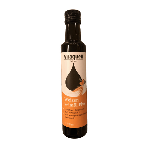 Vitaquell hvetekimolje er fremstilt av tørket hvetekim og er uraffinert. Den har et høyt innhold av vitamin E og essensielle umettede fettsyrer også Omega 3 fettsyren (α-linolensyre). Den milde nøtteaktige smaken er velegnet til det vegetariske og veganske kjøkken og spesielt speltretter.