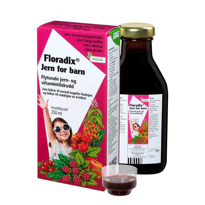 Det flytende jerntilskuddet Floradix Formula fra kvalitetsprodusenten Salus har gjennom årene hjulpet titusener av nordmenn å dekke sin jernmangel. Nå lanserer vi jern- og vitamintilskuddet, Floradix Jern for barn, i Norge